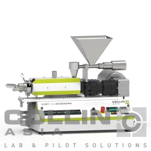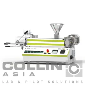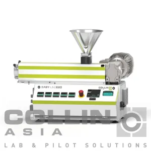 The EASY LINE single-screw extruder is the standard unit for the continuous plastification of polymers. The extruders of the COLLIN EASY LINE series have an output of between 50 and 3000 g/h. They are the ideal tool for training and science as well as for research and for the testing of new materials in small batches. The design has a very small footprint and is therefore the ideal machine to build co-extrusion lines.