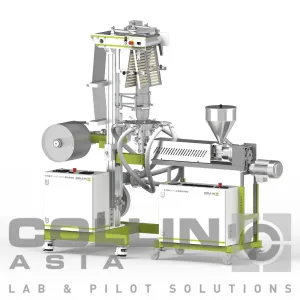 The product line, EASY LINE, includes compact, table-top machines for polymer processing, training, research, and development—such as presses, extruders, compounders, roll mills, flat film lines, blown film lines, pressure filter tests and automatic band melt filter for recycling.