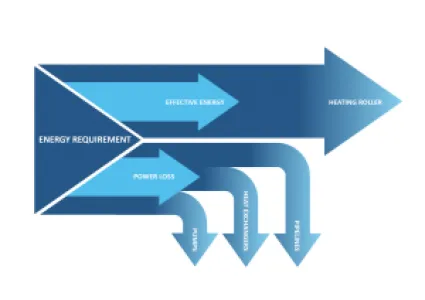 Owing to their electrical mode of operation, the heating rollers do not need any liquid media, the power and signals are transmitted via a flange-mounted slip ring contact. Heat losses outside the roller through the pipe system are thus now a thing of the past.